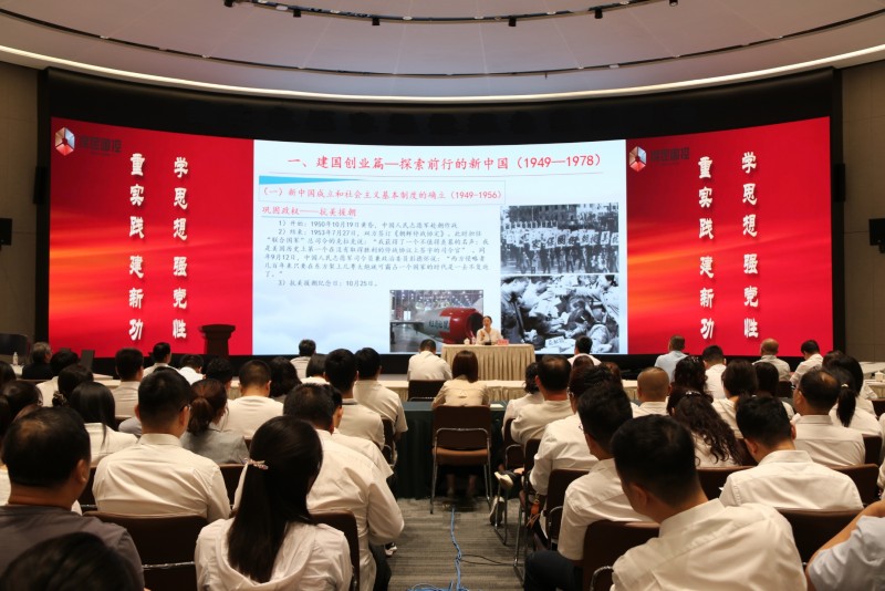 為深入開展學習貫徹習近平新時代中國特色社會主義思想主題教育,扎實推進主題教育理論學習,9月12日下午,市國控集團啟動學習習近平新時代中國特色社會主義思想主題教育實踐活動暨踐行企業精神主題文化月活動,邀請中共保定市委黨校青年教師楊小棑圍繞“新中國的74年”進行歷史串講和史實輔導,集團200余名黨員干部職工參加了授課。