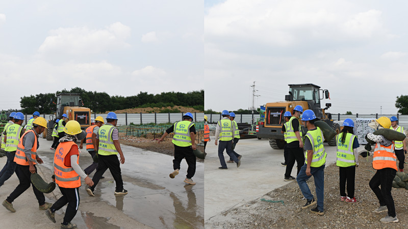 防汛搶險情景模擬:出現強降雨天氣雨水沖破基坑圍堰險情、拉響警報、啟動應急事故救援預案、組織應急搶險人員封堵基坑圍堰、啟動備用水泵排查基坑積水、設置現場警戒并安排專人值守。